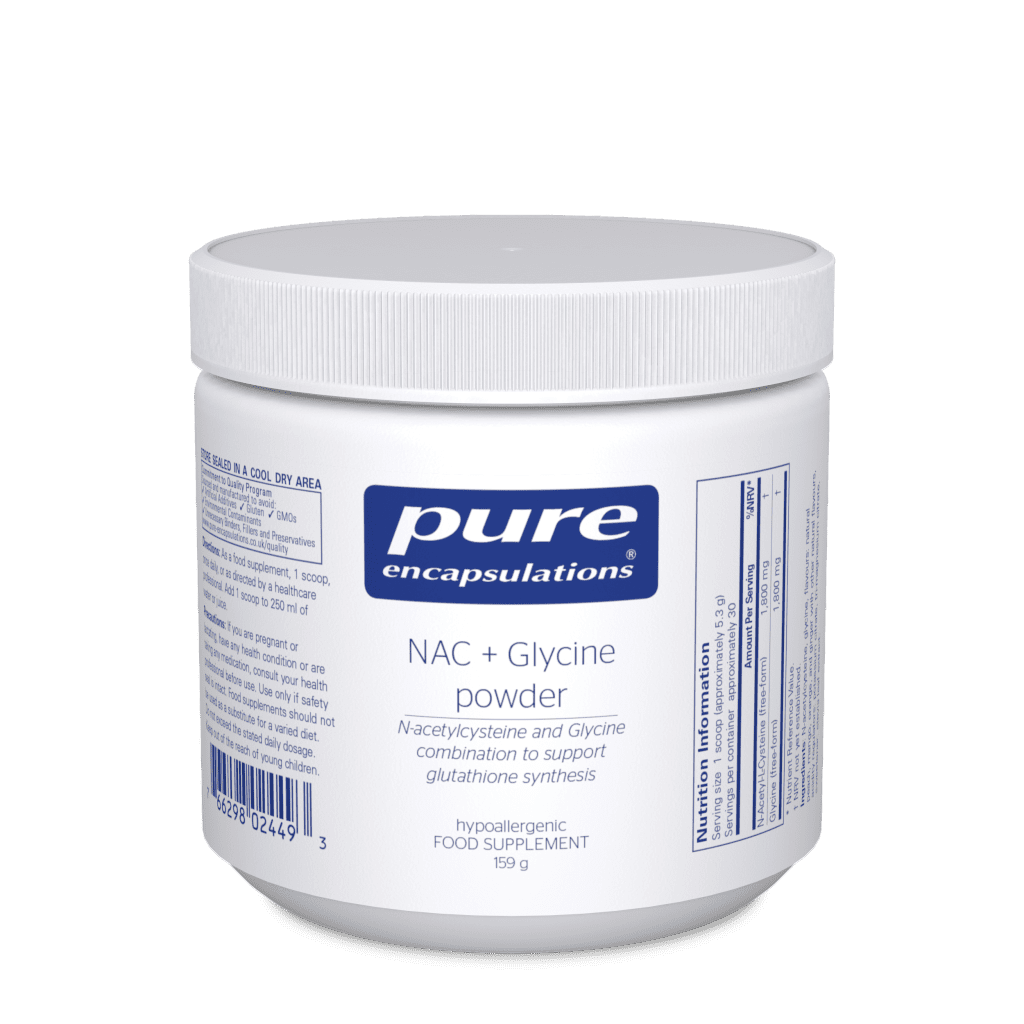 NAC + Glycine Powder provides 1.8 grams of both N-acetylcysteine (NAC) and glycine per serving in a great-tasting natural peach-ginger flavour.