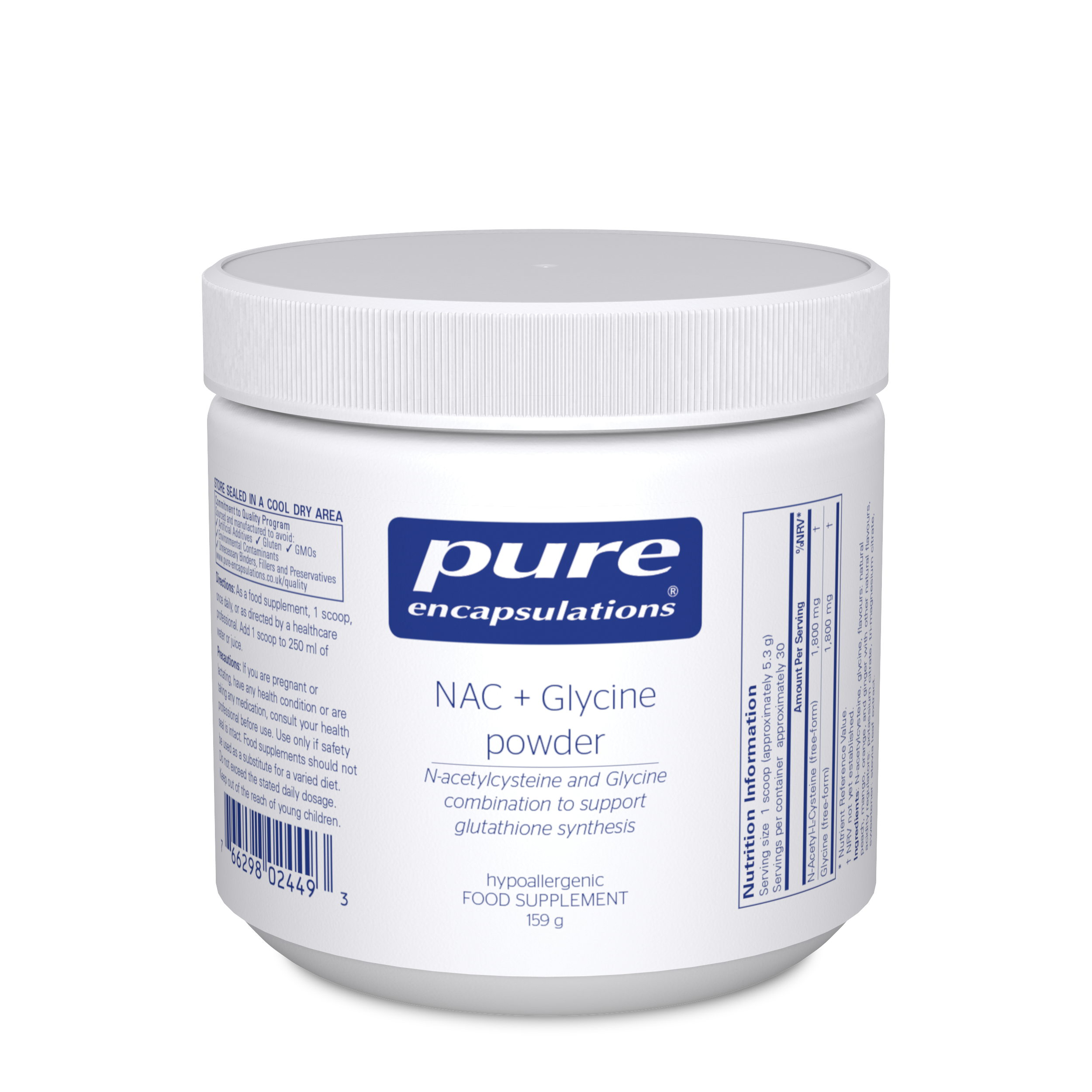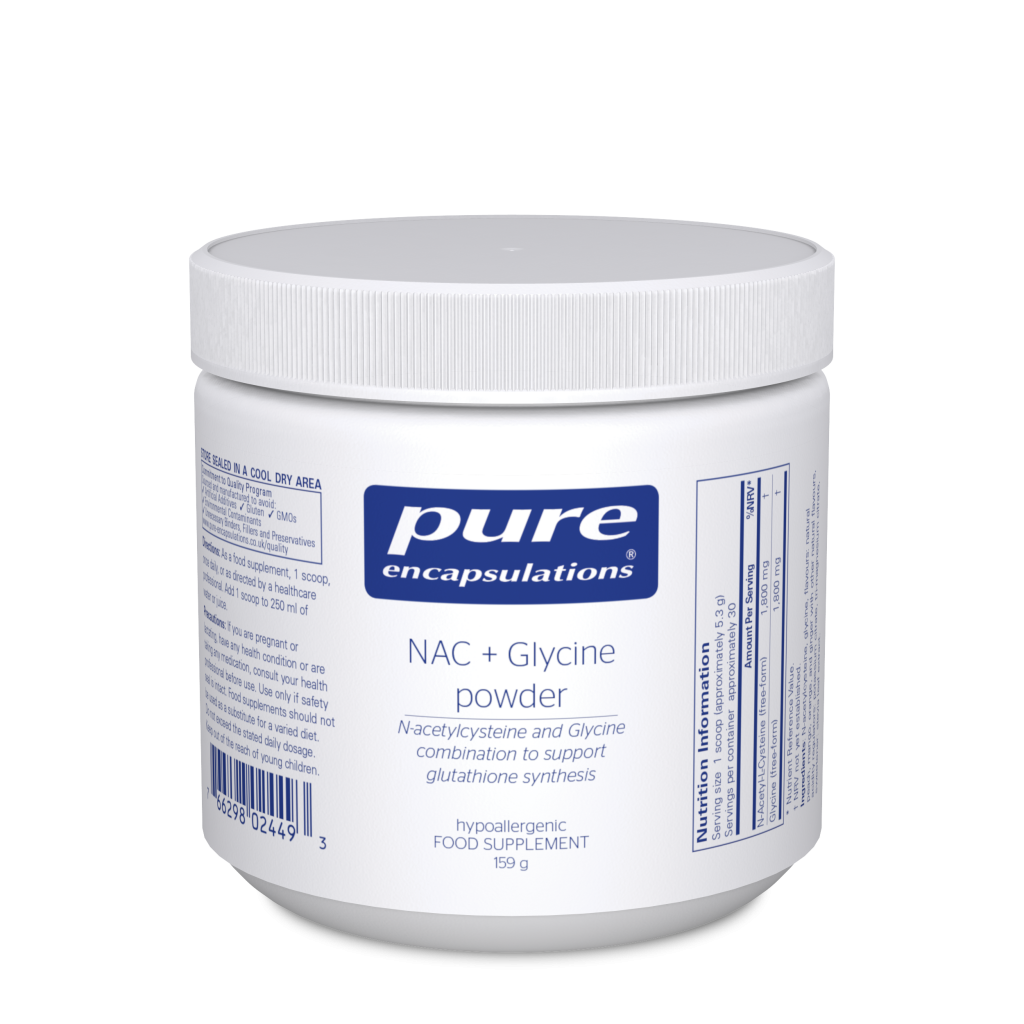 NAC + Glycine Powder provides 1.8 grams of both N-acetylcysteine (NAC) and glycine per serving in a great-tasting natural peach-ginger flavour.