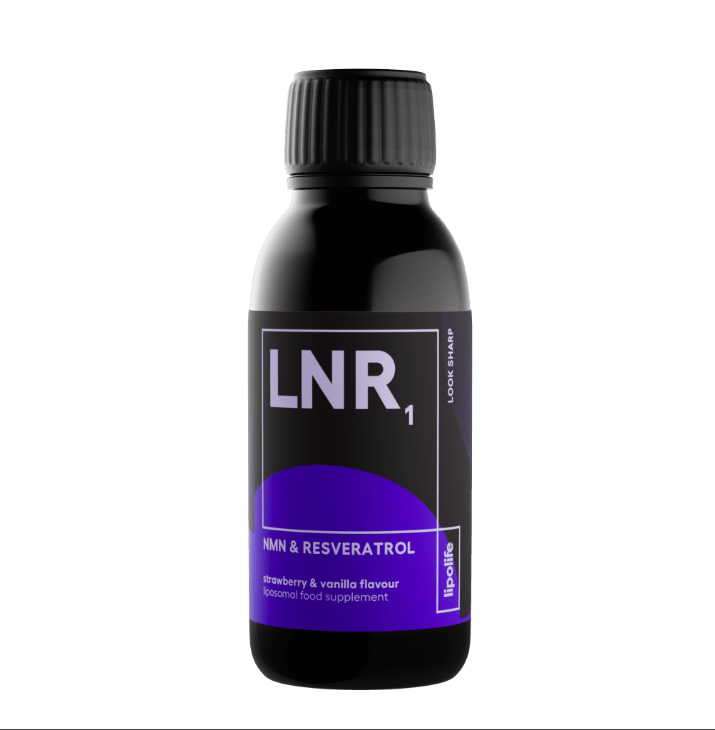 LNR1 150ml by Lipolife is a liquid supplement featuring NMN (Nicotinamide Mononucleotide) and Resveratrol, formulated for optimal absorption.