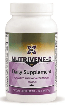 The Nutrivene-D Advanced Antioxidant Daily Supplement contains over 40 vitamins, minerals, and antioxidants including Zinc, Selenium, Coenzyme Q10, Alpha Lipoic Acid, Glutathione, Bioflavonoids, Vitamins A, C, and E.