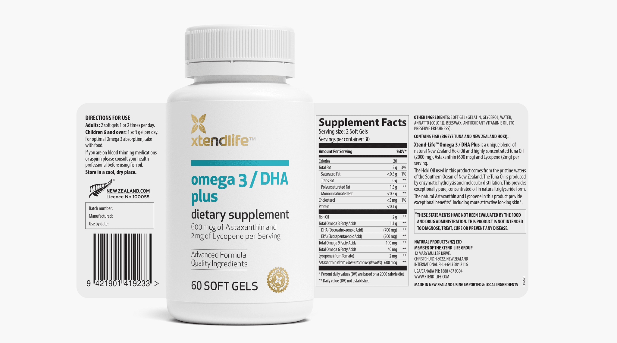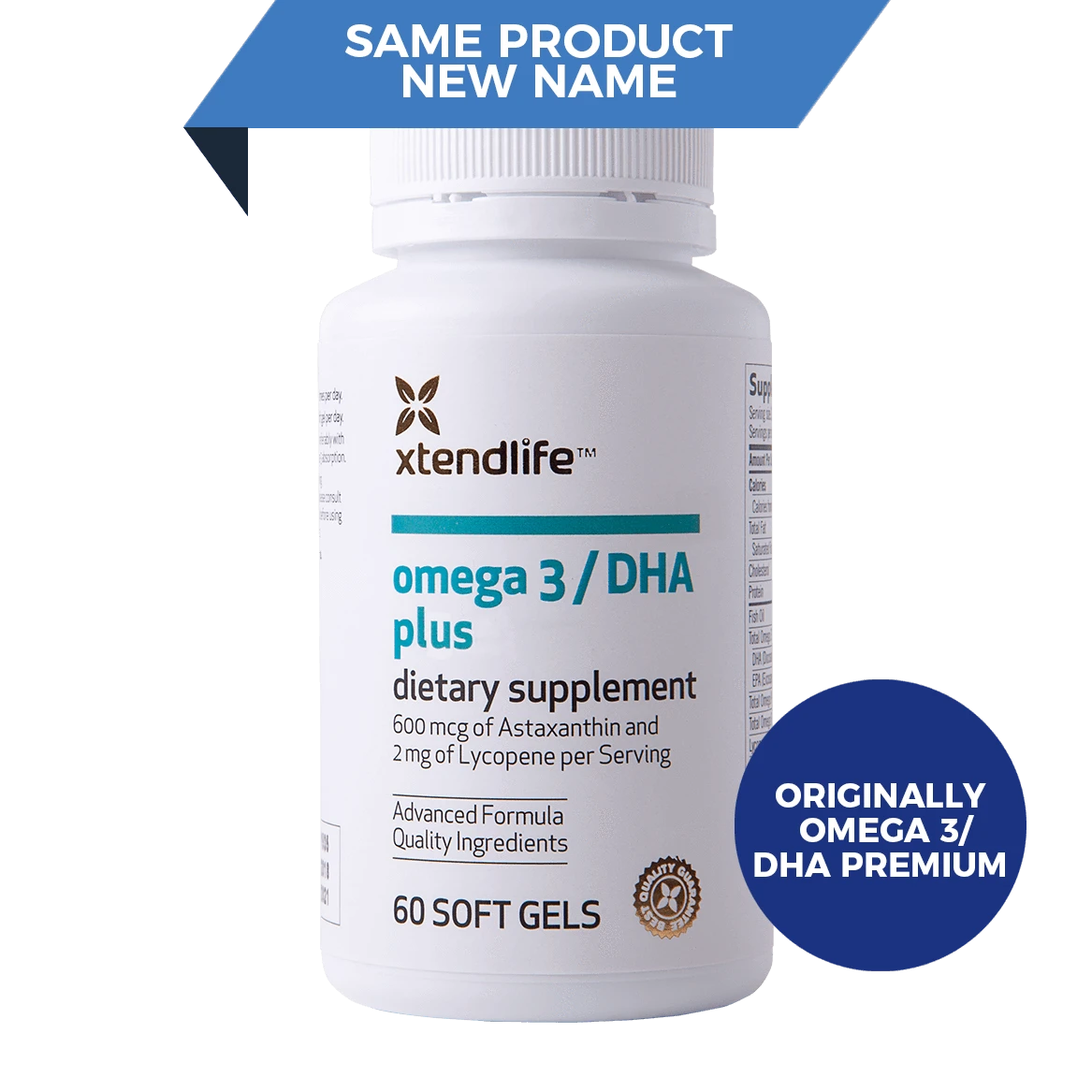 Omega 3 DHA plus 60 softgels to support heart, brain and healthy aging -xtendlife™