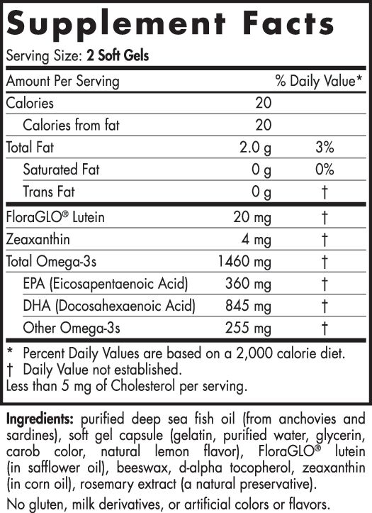 Omega vision® is specifically formulated to promote eye health and preserve good vision. It blends the natural carotenoids zeaxanthin and lutein with enriched omega-3s. More omega-3 DHA is present in eye tissue than in any other part of the body. This special mixture helps protect against damaging UV and blue light while also promoting eye health