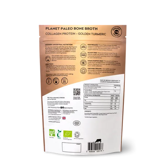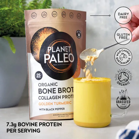 Organic Bone Broth Collagen Protein – Golden Turmeric with Black Pepper 450g – Planet Paleo