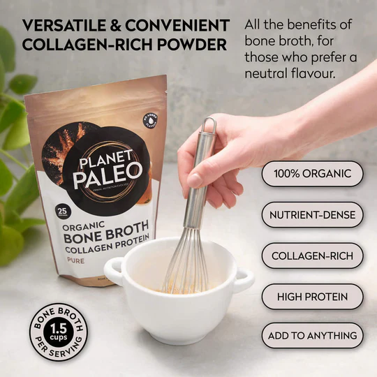 Organic Bone Broth – Pure Unflavoured 225g – Planet Paleo