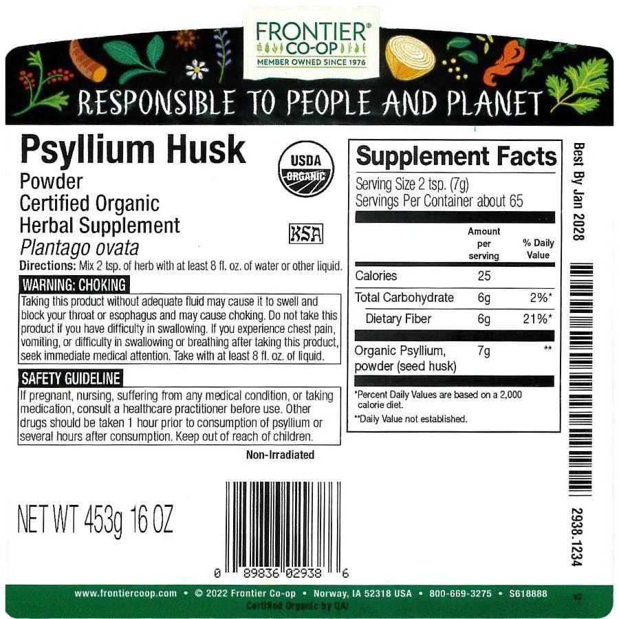 Frontier Co-op® Organic Psyllium Husk Powder is perfect for baking, encapsulatingand making herbal preparations.