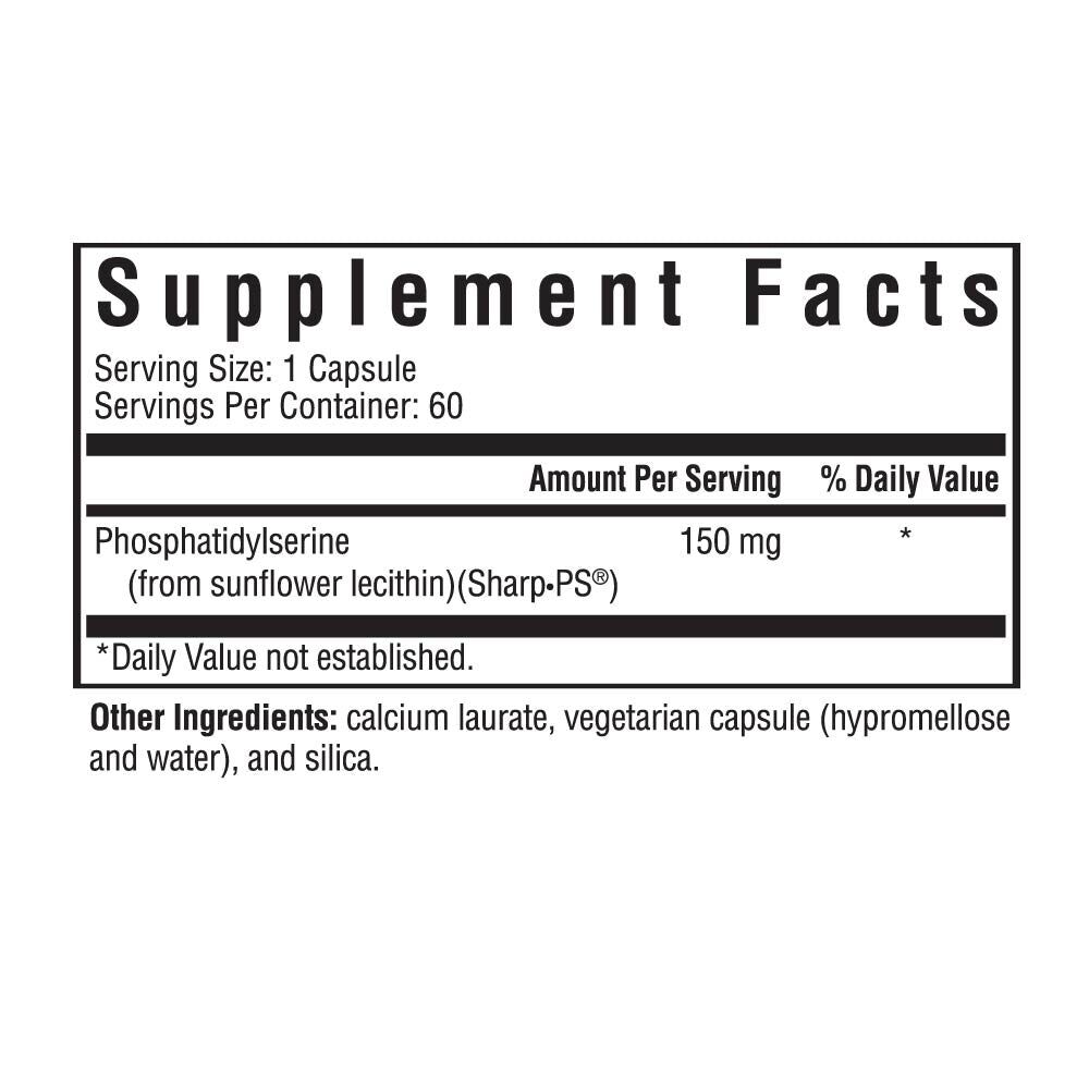 Each capsule contains 150mg of Phosphatidylserine derived from sunflower lecithin