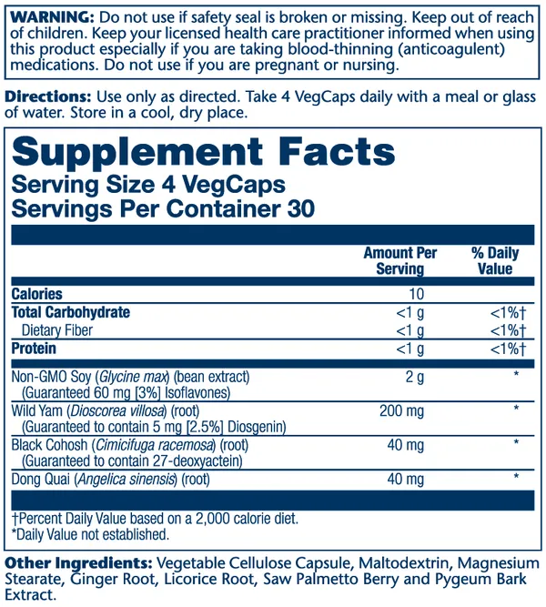 Non-GMO soy (Glycine max) (bean extract) (Guaranteed 60mg [3%] Isoflavones) | 2g | |
