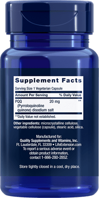 PQQ (pyrroloquinoline quinone) is a potent antioxidant that supports mitochondrial function, enhances cellular energy and protects against oxidative stress.