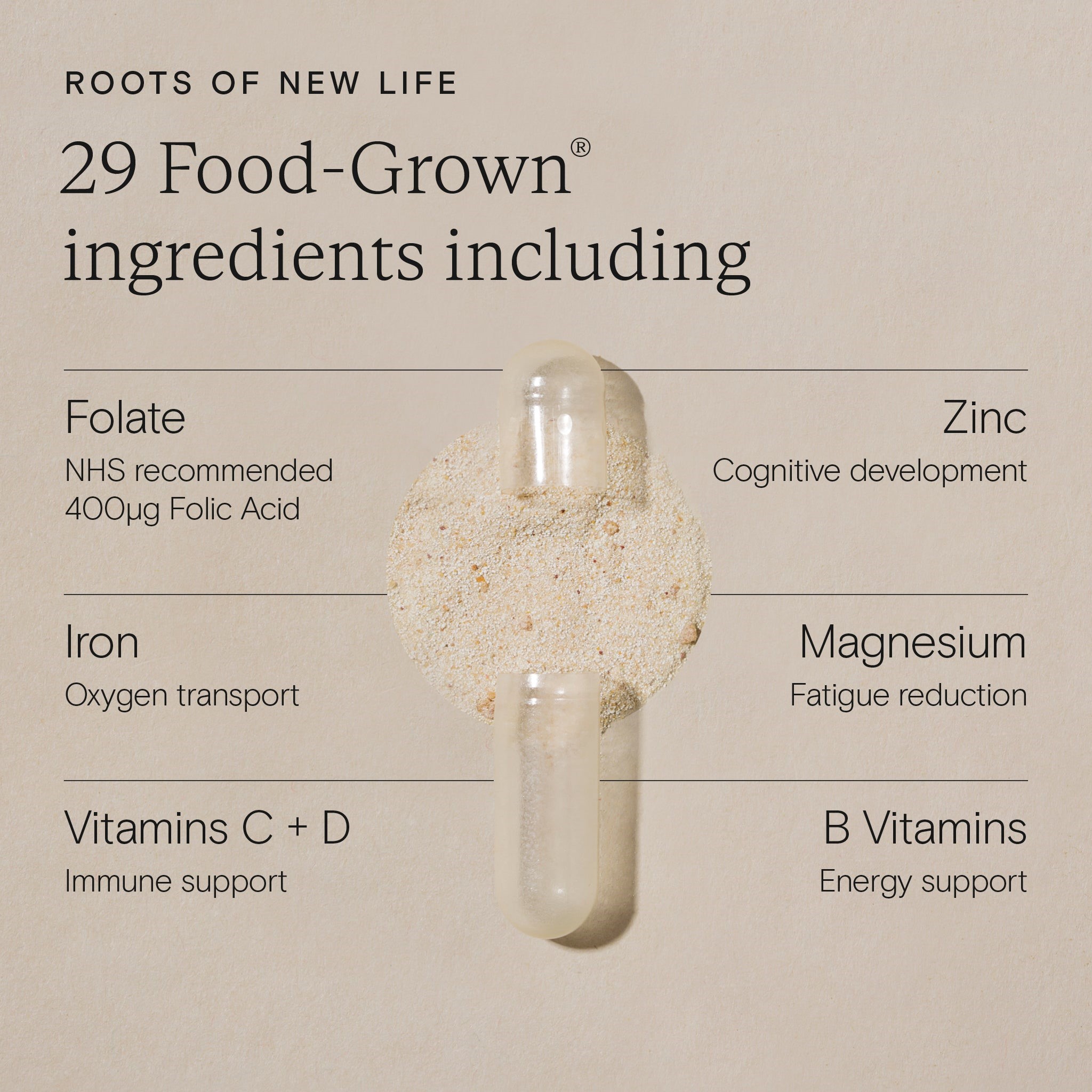 The Wild Nutrition Food‑Grown® Pregnancy + New Mother Multi is a comprehensive, science‑inspired supplement designed to support both expectant and new mothers throughout their journey. Featuring 29 food‑bound nutrients, it delivers the UK‑recommended dose of folate (400 µg) in its naturally active form, supporting maternal tissue growth and foetal development. With key nutrients such as vitamin D, iron, B12 and iodine, it helps reduce tiredness and fatigue, sustain energy, support immune function and contribute to healthy bone, tooth and nervous system development. Designed for gentle digestion and suitable for use across all trimesters and into breastfeeding, this formula offers convenient, high‑quality nutritional support when your body needs it most.