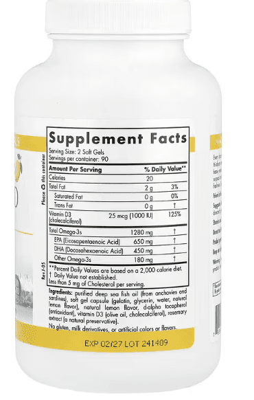 | Vitamin D3 (cholecalciferol) | 25 mcg (1000 I.U.) | 125% |