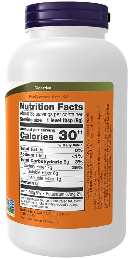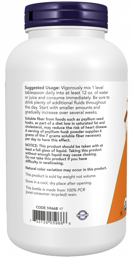 Now Foods Psyllium Husk Powder is a natural source of soluble fibre, derived from premium psyllium seed husks.