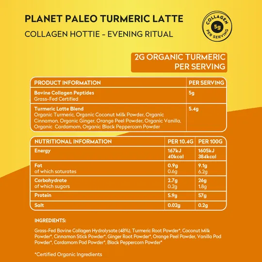 Planet Paleo Turmeric Latte is a nourishing and delicious drink that combines the benefits of grass-fed collagen peptides with antioxidant-rich turmeric and warming spices. It helps support joint health, skin elasticity, gut health and overall well-being while providing a comforting, protein-rich beverage - Is this product dairy-free and gluten-free?