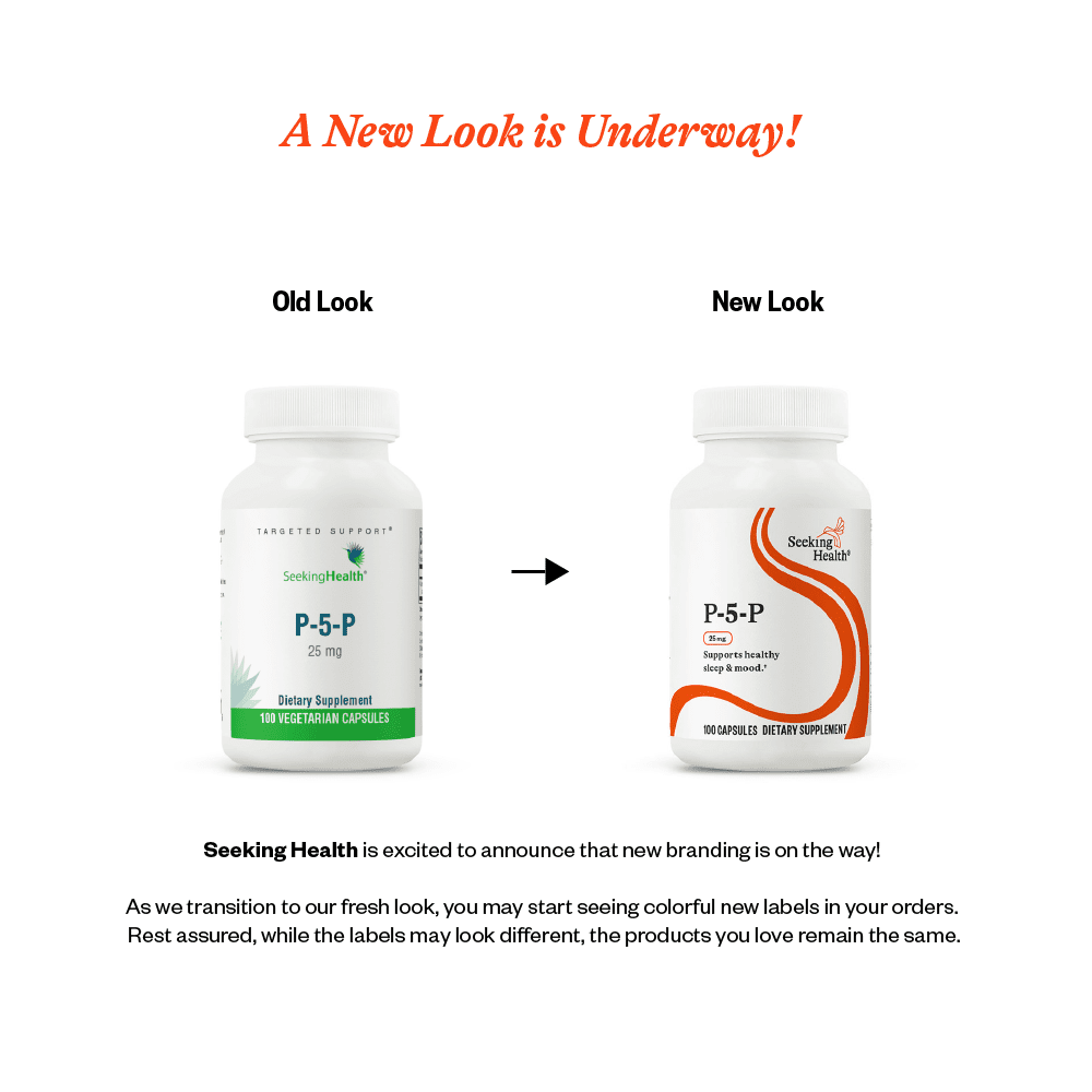 Seeking Health’s P-5-P provides a powerful 25mg of vitamin B6 (1471% of the Daily Value) in its active form, pyridoxal 5’-phosphate (P-5-P).