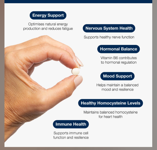 - Vitamin B6 in a bioactive and enzymatically converted form bypassing the need for conversion.