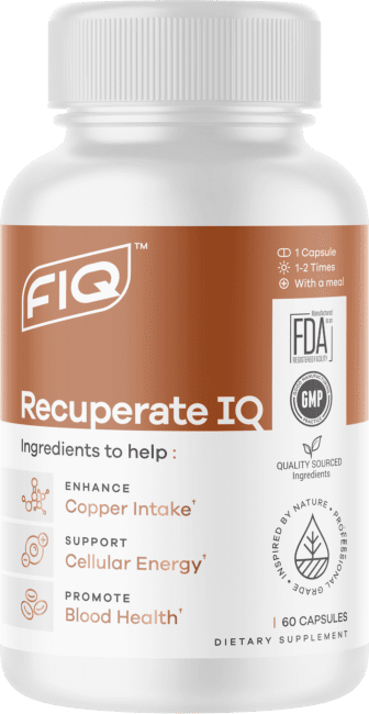 Recuperate IQ provides essential vitamins and nutrients for overall health and sustained energy while maintaining balanced iron levels and managing oxidative stress.