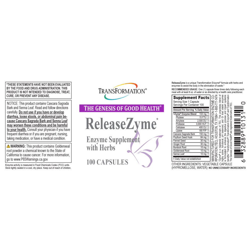 Transformation Enzymes ReleaseZyme is a comprehensive digestive support formula designed to promote healthy bowel function and assist in the elimination of waste.