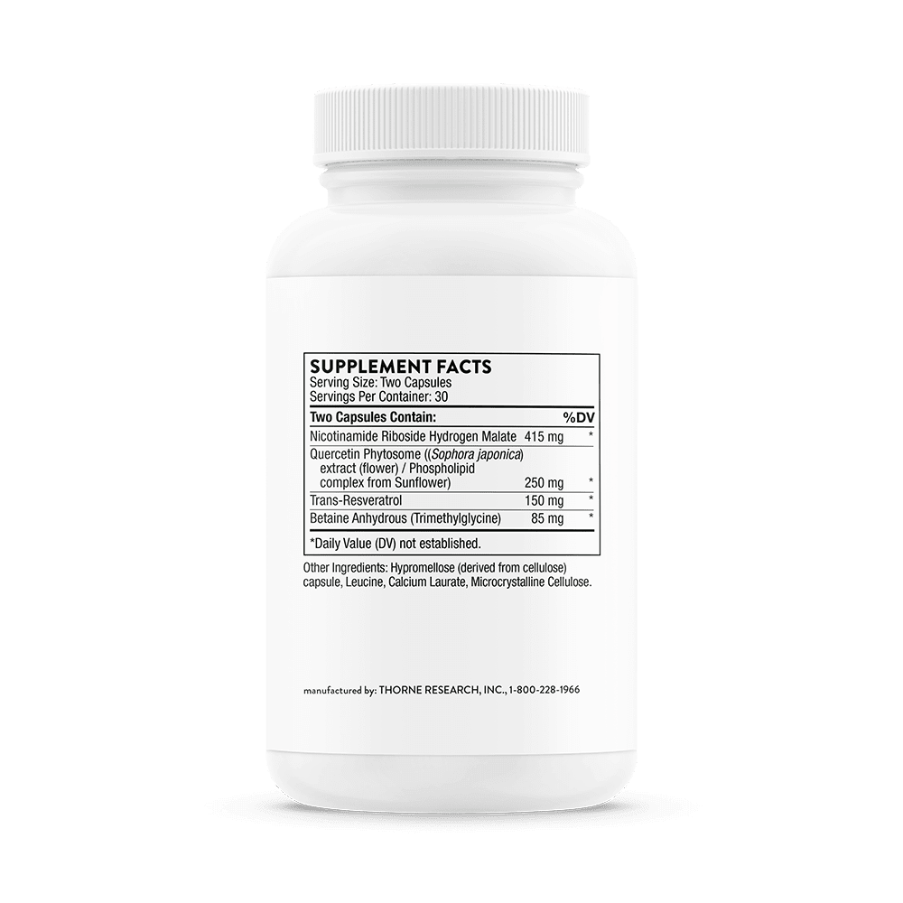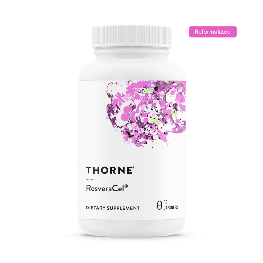 Thorne's ResveraCel® promotes cellular repair, boosts sirtuin proteins and increases NAD+ production, supporting mitochondrial energy production and healthy aging.