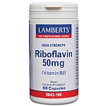 Lamberts® Vitamin B2 (Riboflavin) is a high-strength supplement providing 50mg per capsule, supporting nervous system function, red blood cell maintenance, skin and vision health and reducing tiredness and fatigue. It is made to stringentGMP pharmaceutical standards