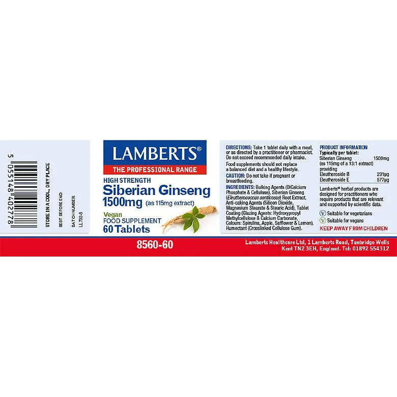 Lamberts Siberianginseng contains active compounds called eleutherosides, which are crucial for its effectiveness.