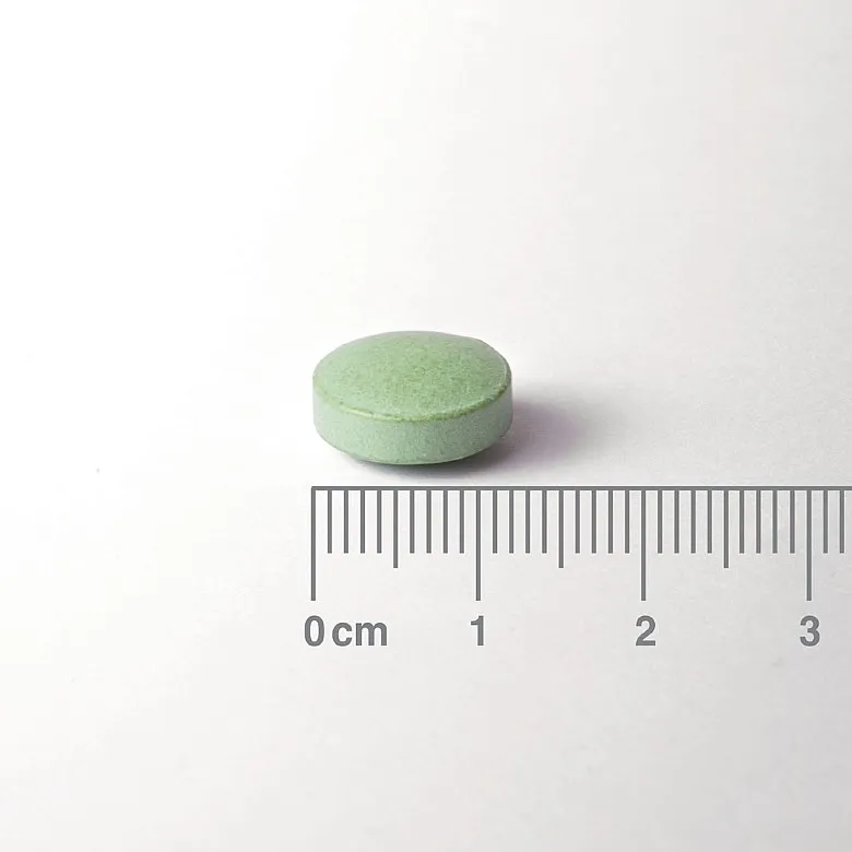 DiCalcium phosphate, Cellulose, Anti-caking agents (Silicon dioxide, Magnesium stearate and stearic acid), Tablet coating (Hydroxypropyl methylcellulose, Colours: Spirulina, Apple, Safflower and lemon,glazing agent: Calcium carbonate), Crosslinked cellulosegum