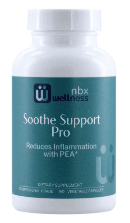 Soothe Support Pro, featuring palmitoylethanolamide (PEA), reduces inflammation naturally. PEA is a bio identical compound produced by healthy tissue to respond to inflammation, offering anti inflammatory, neuroprotective and pain relieving effects. It supports the nervous system and normalizes immune responses without the psychoactive effects of opioids. By enhancing CB2 receptor sensitivity and stabilizing microglial and mast cell function, PEA helps manage inflammation and pain while promoting overall cellular health