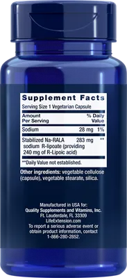 Each vegetarian capsule delivers 240mg of the active R-lipoic acid form to promote healthy cellular function, with a 1-2 month supply in every bottle