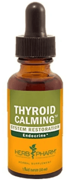 Thyroid Calming features Bugleweed extract prepared from the flowering aerial portions of Lycopus spp. plants. It also features Motherwort extract prepared from the leaf and flowering tops of Certified Organic Leonurus cardiaca plants grown on Herb Pharm's own farms in southern Oregon.