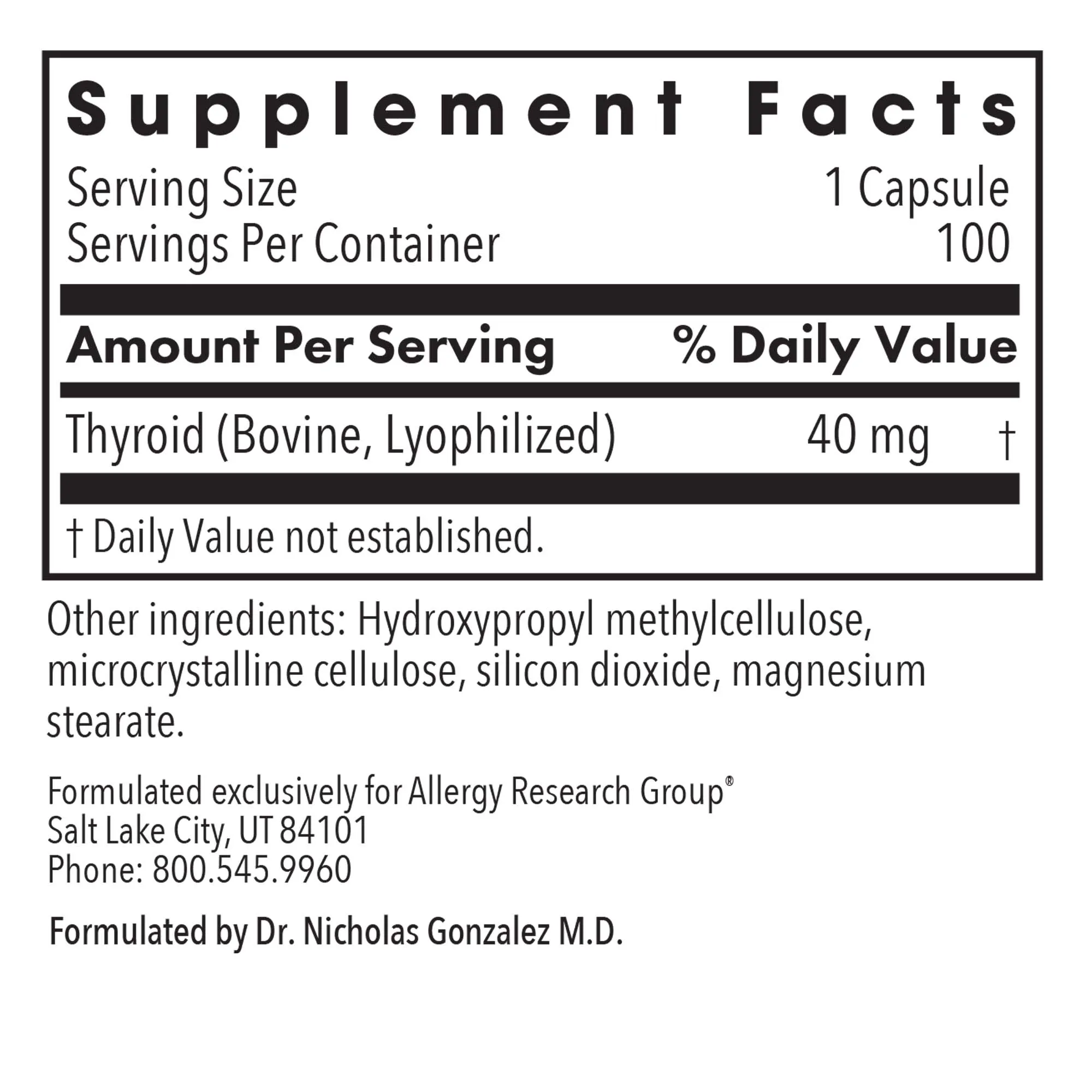 | Thyroid (Bovine, Lyophilized) | 40mg | |