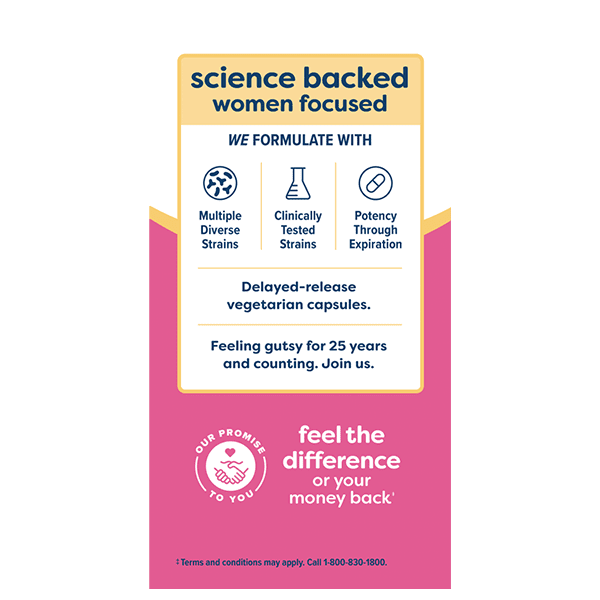 Vaginal probiotics contain specialized bacterial strains that have been shown in scientific research to support balance in the vaginal microbiome. Strains like L. rhamnosus GR-1® and L. reuteri RC-14® support an acidic vagina, balanced vaginal pH and help balance yeast and bacteria to support a healthy vaginal microbiome*