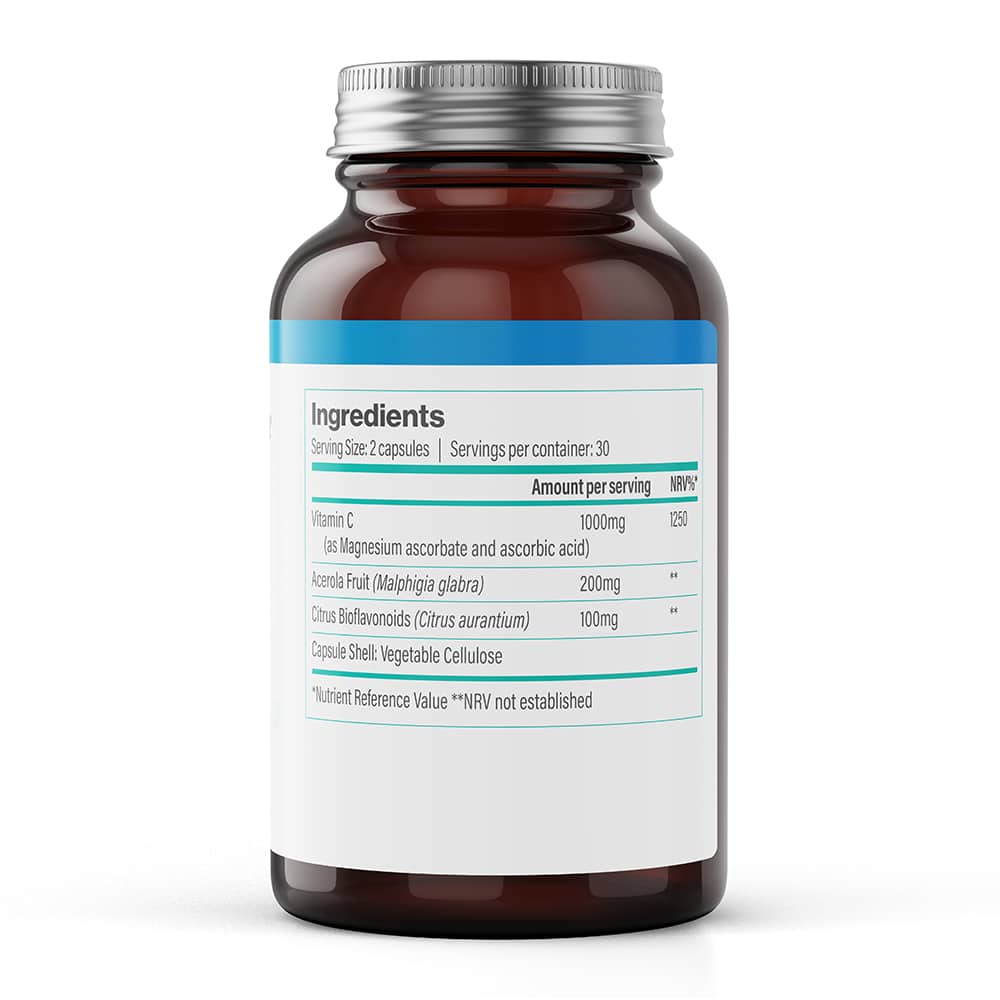 Vitamin C (1000mg), acerola fruit (200mg), citrus bioflavonoids (100mg)
