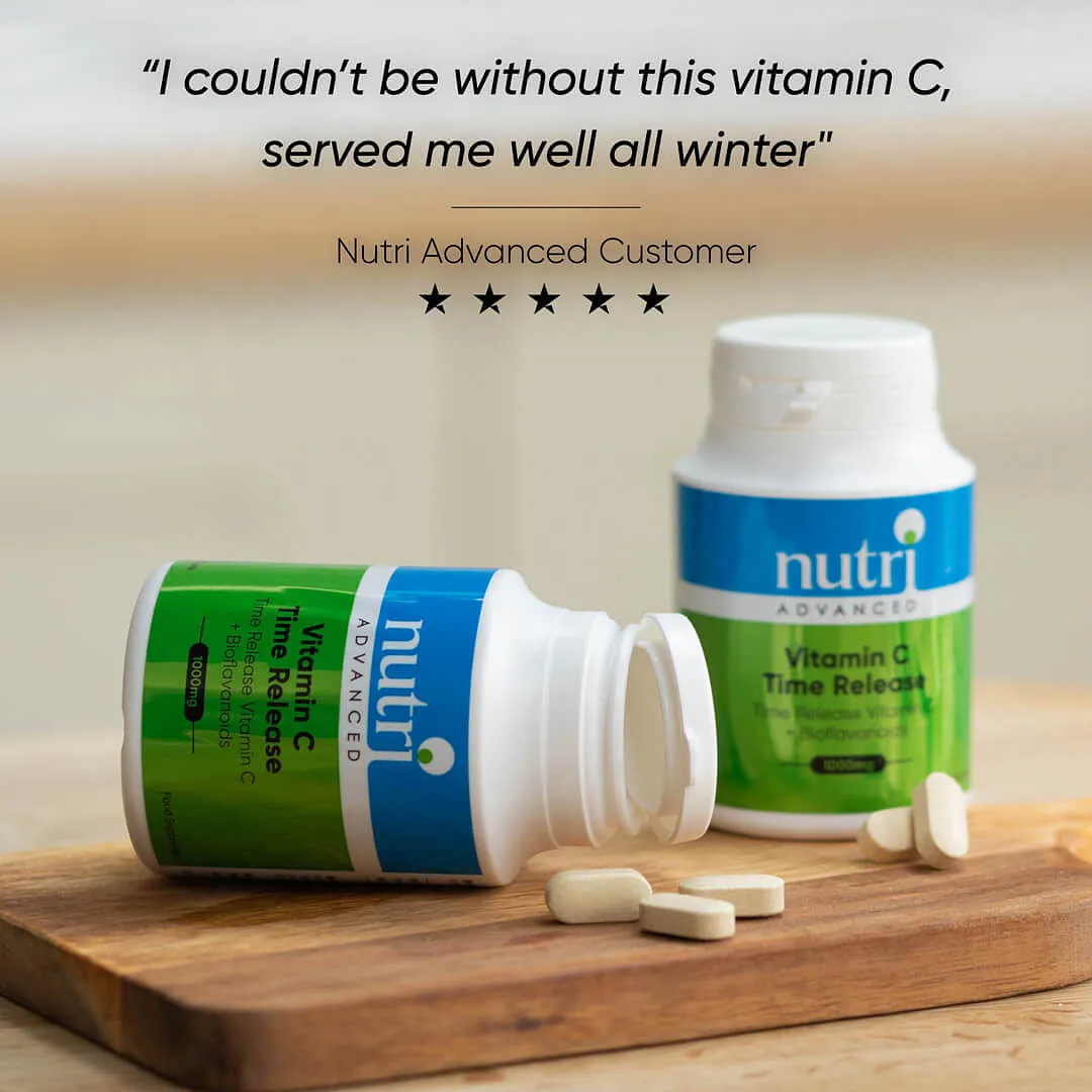 Nutri Advanced Vitamin C Time Release 1000mg, 90 tablets supports immune health, collagen production, energy and reduces fatigue.