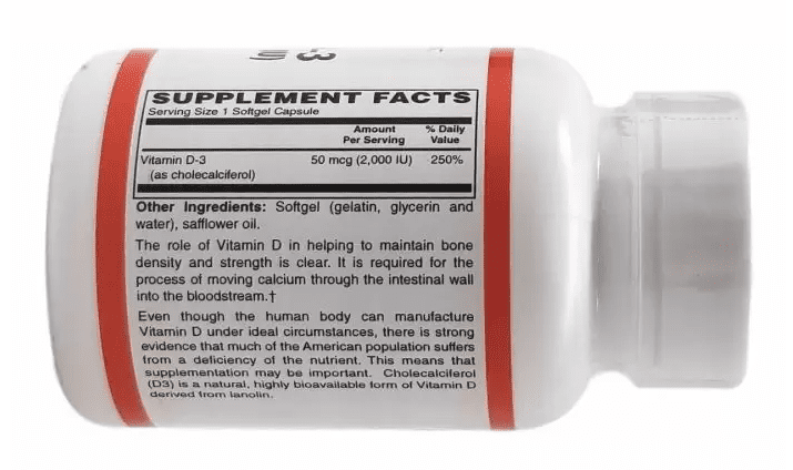 - 2,000 IUs of vitamin D-3 (cholecalciferol), a highly bioavailable form of Vitamin D
