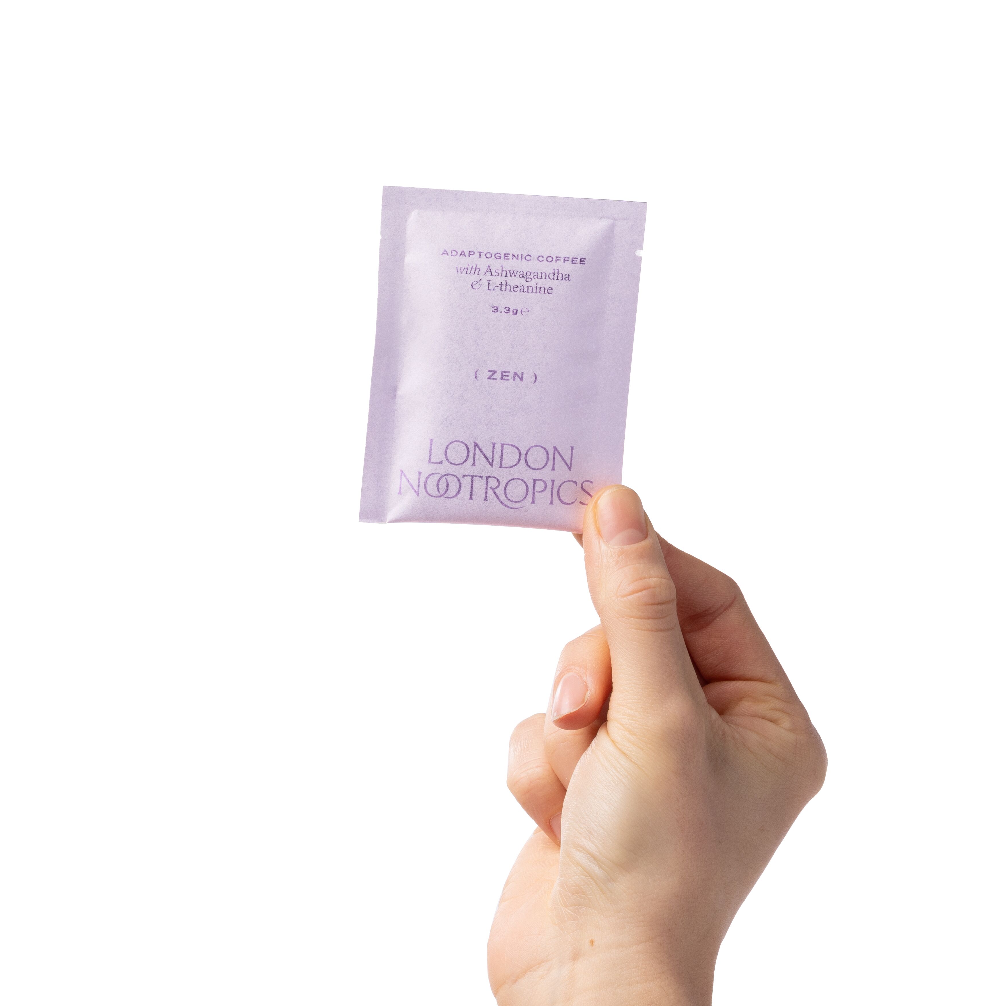 Each sachet combines finely ground roasted coffee with premium adaptogens: 110mg of KSM-66 Ashwagandha® and 153mg of L-theanine.