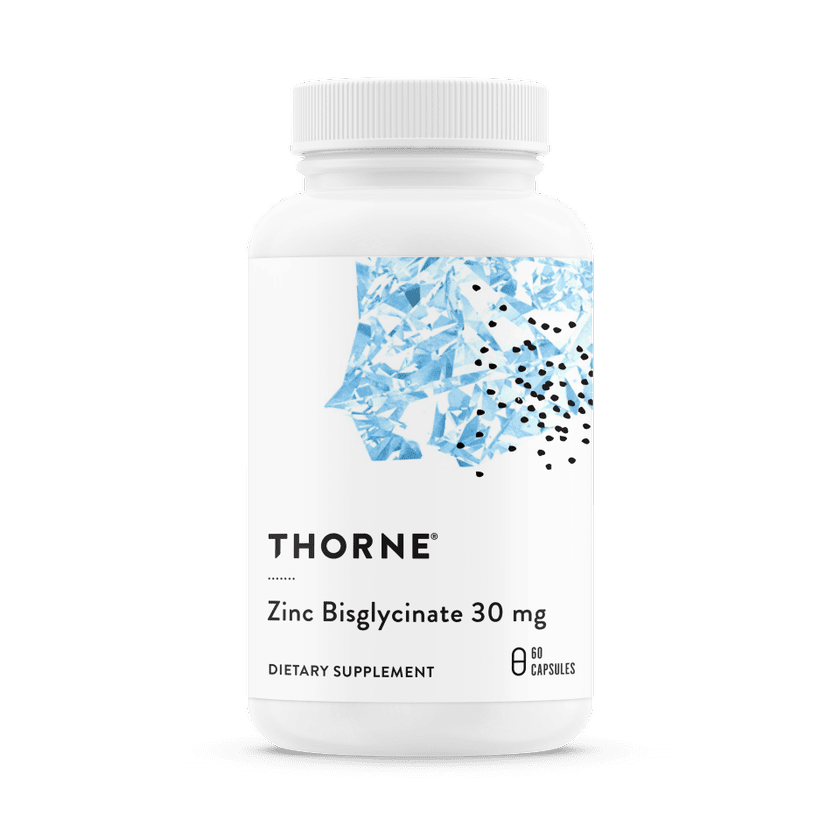 Zinc is an essential micronutrient crucial to more than 200 enzymatic reactions, playing a key role in growth, immune function, testosterone metabolism, and more. It supports general wellness and has beneficial effects on connective tissue, reproductive health, and eye health. Thorne's Zinc Bisglycinate is a highly absorbable form of zinc bound to glycine, enhancing its bioavailability