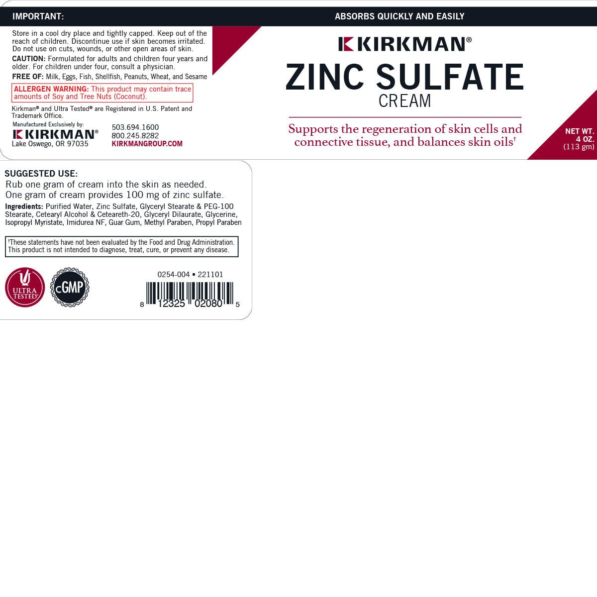 KIRKMAN® Zinc Sulfate cream is not a dietary supplement but a topical cream containing zinc sulfate .
