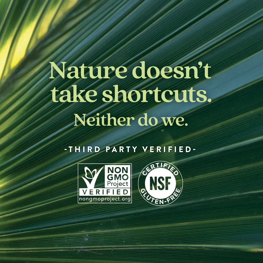 Gluten Free, No artificial sweeteners, flavours, colours or preservatives., Non GMO, Vegetarian