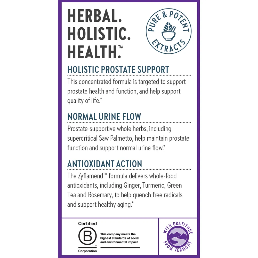 Zyflamend Prostate is a natural blend of whole food antioxidants and prostate supporting herbs, such as Non-GMOginger, Turmeric,green Teaand Rosemary.
